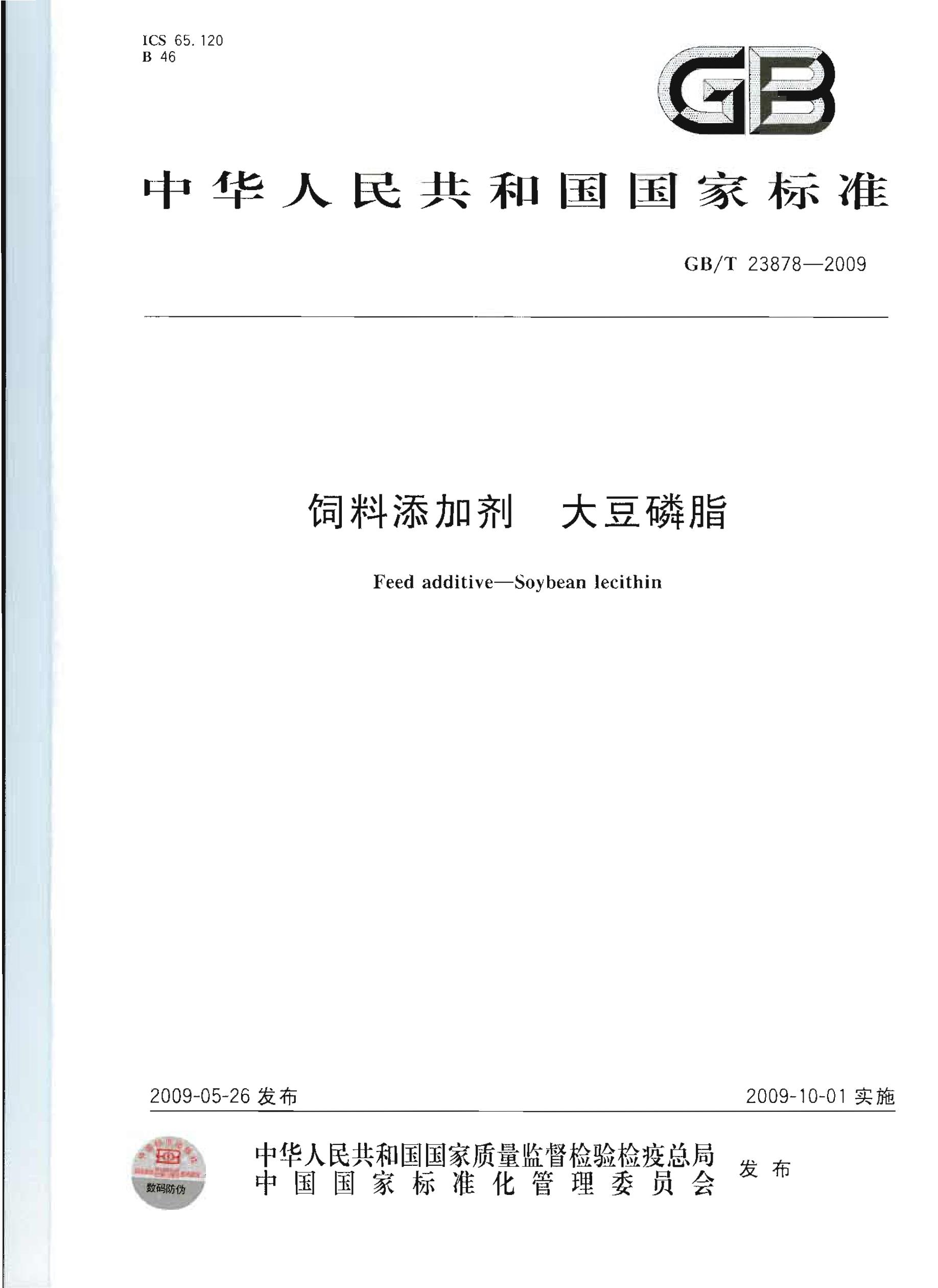 飼料添加劑大豆磷脂 GB/T23878-2009