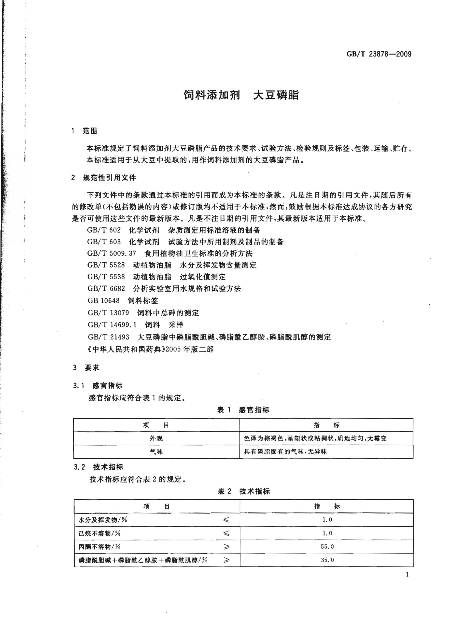 飼料添加劑大豆磷脂 GB/T23878-2009