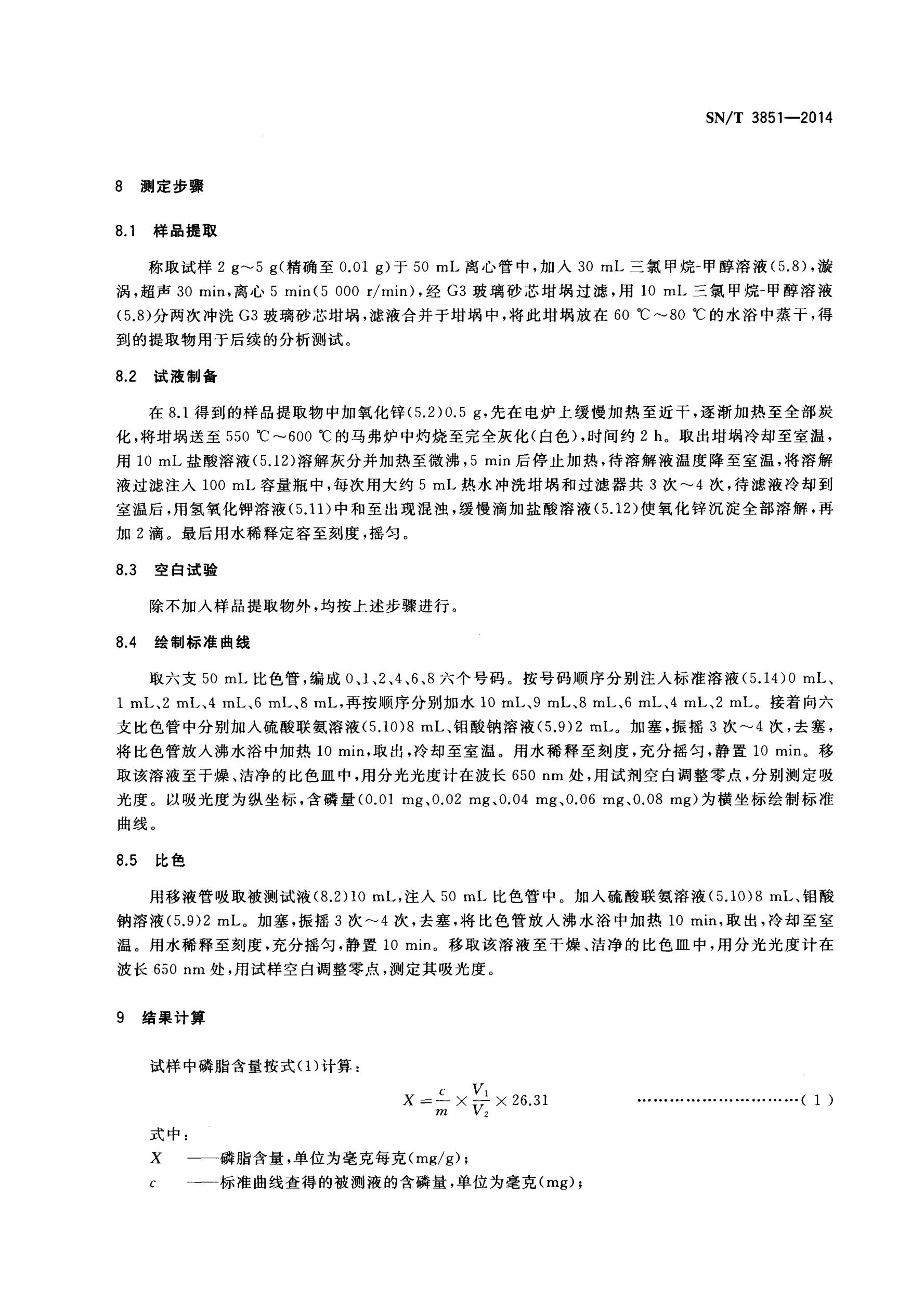 出口食品中磷脂的測(cè)定 SN/T 3851-2014